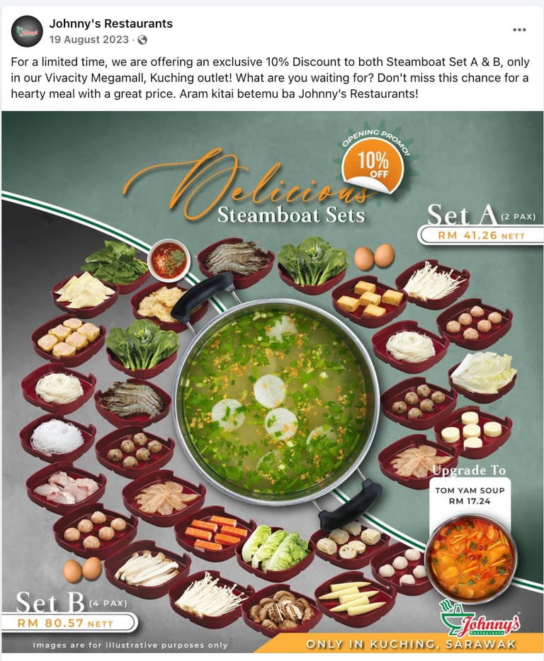 Contoh bagaimana Johnny's Restaurant menggunakan taktik FOMO di dalam pos media sosial mereka.