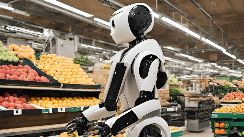 Salah satu contoh terbaik adalah penggunaan robot pengendali di bahagian buah-buahan dan sayuran. Robot ini dilengkapi dengan penglihatan komputer yang canggih yang membolehkan mereka mengenal pasti buah-buahan dan sayuran yang rosak atau busuk. Dengan cara ini, mereka membantu memastikan kualiti dan kesegaran produk yang dijual kepada pelanggan.