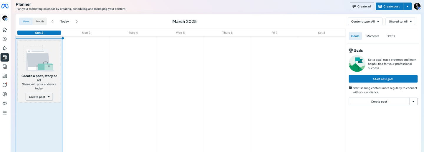 Di Meta Business Suite, anda boleh gunakan fungsi Planner untuk mencipta dan menjadual post Facebook dan Instagram anda.